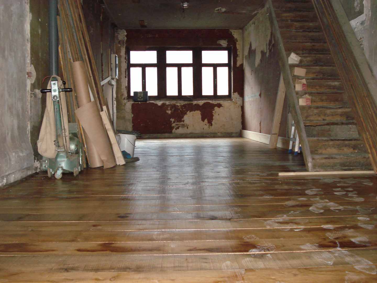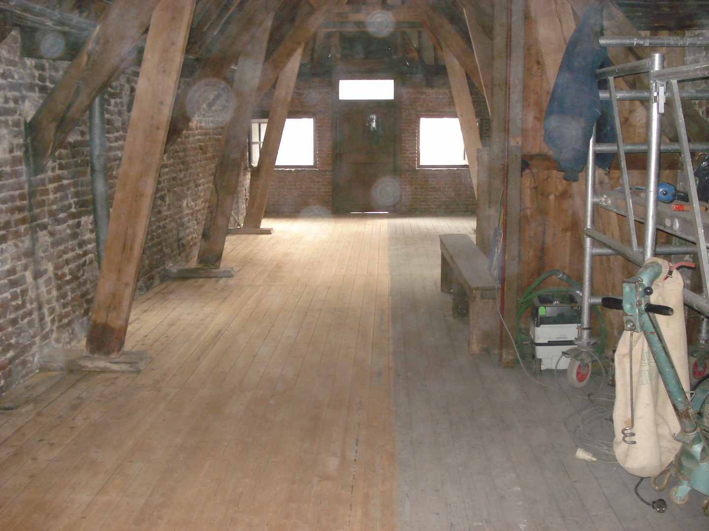 Hieronder een voorbeeld van een vloer met aanhelen, hierna wordt de vloer geschuurd en gelakt of geolied en is geen verschil meer te zien